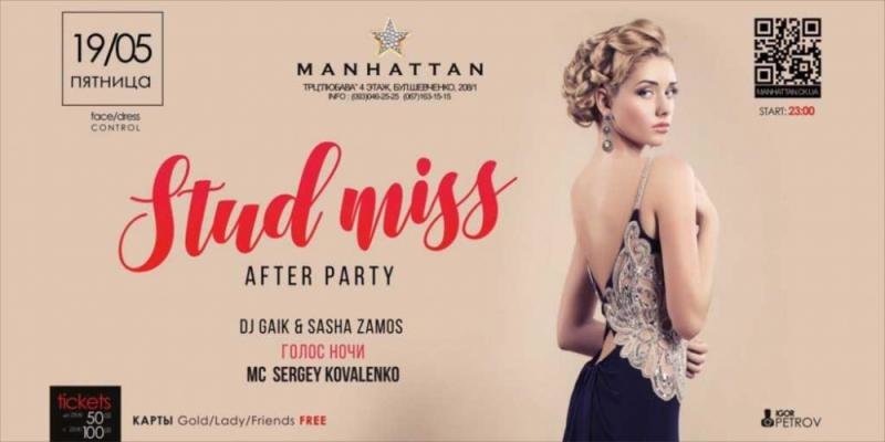 19 Мая, в Ночном клубе MANHATTAN, будет самая красивая вечеринка Мая "After Paty StudMiss Черкасс"