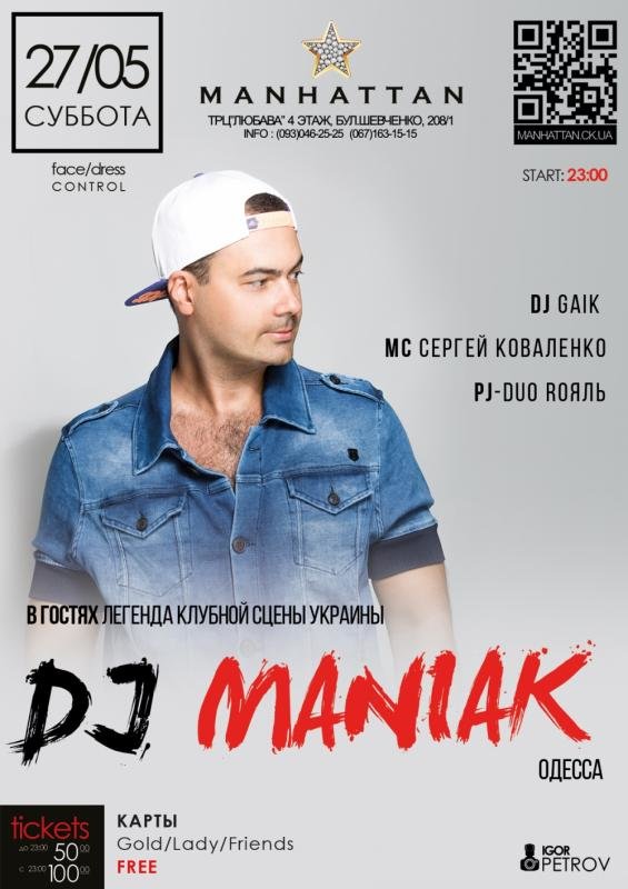 В гостях легенда клубной сцены Украины DJ MANIAK. Самые крутые треки, самые популярные песни, музыкальный ритм который пронизывает ваше тело и дарит незабываемые ощущения и эмоции.