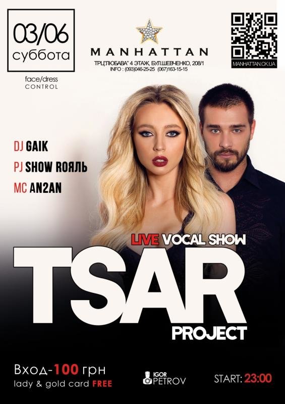 3 Июня у нас в гостях будет 'Tsar Project' - это вокально- танцевальное шоу, которое не оставит никого равнодушным, и подарит заряд эмоций на все лето .