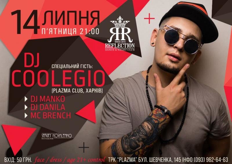 Спеціальний гість ночі DJ COOLEGIO – резидент Night Club "PLAZMA" (Харків), діджей з унікальним музичним смаком, його Hip-Hop та R'n'B хіти змусять танцювати кожного.