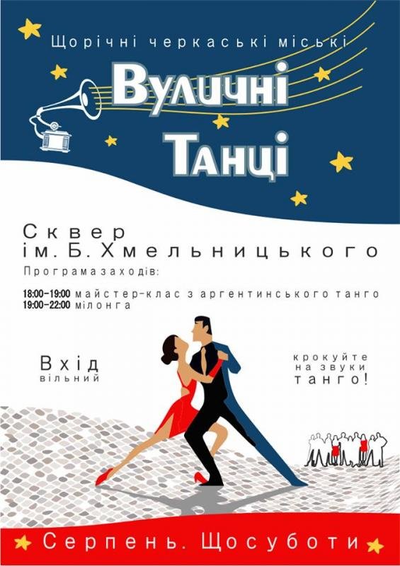 Школа аргентинського танго м.Черкаси сумісно з БК ім.І.Кулика запрошує всіх охочих прийняти участь в Вуличних танцях 2017.