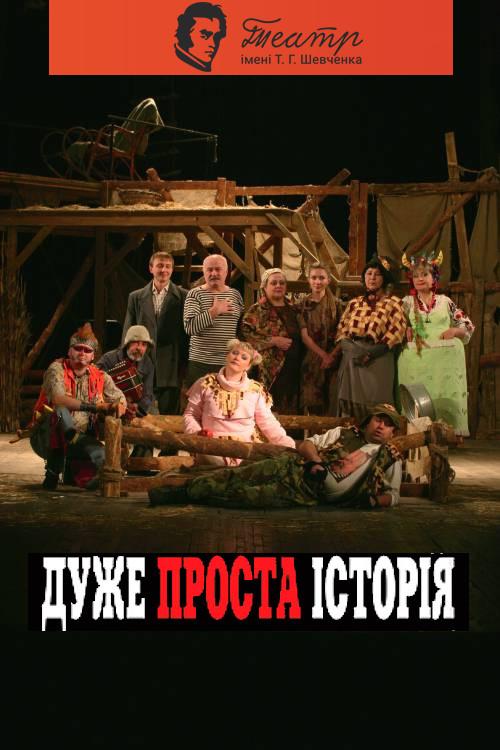Хоча сама назва, «Дуже проста історія», вже налаштовувала глядачів скептично, її основна сюжетна лінія банальна й невигадлива — Дарина кохає Олексія, вагітніє, молоді люди готові одружитися, але батько дівчини не любить бідного хлопця, батько якого — п'яничка, котрий до того ж колись «забрав» у нього кохану. Не було б у цьому нічого, гідного увага публіки, якби не «родзинка» самої п'єси — героями вистави автор робить також свійських тварин, які є свідками подій, (а відбувається все у хліву) і їх «коментаторами». Свиня, Кобила, Корова, Пес і Півень все побачене й почуте сприймають на своєму рівні — а це вже перетворює звичайну театральну виставу на філософську притчу з містичними елементами — особливо у другій дії, коли Свиня, яка все життя мріяла літати, після смерті стає ангелом, а сусід-п'яничка чує розмови звірів, говорить з ними. Перша дія багата на комедійні моменти.