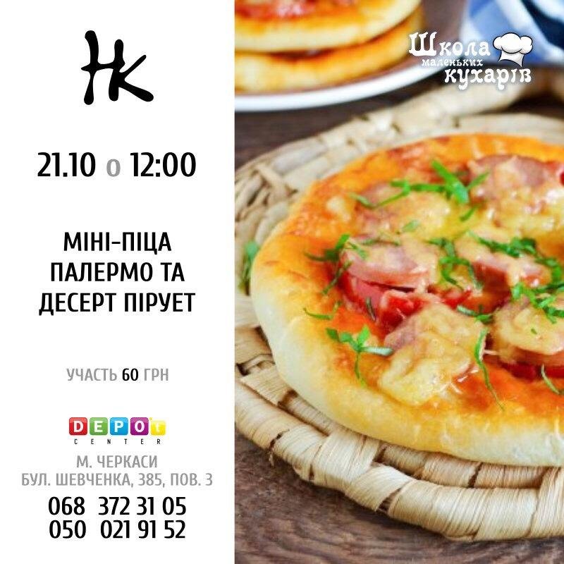 Школа маленьких кухарів запрошує діточок на майстер класс з приготування міні-пици палермо та десерту пірует. Чекаємо на вас:м.Черкаси,вул.Шевченка,385,3 поверх, тел.068-372-31-05,050-021-91-52