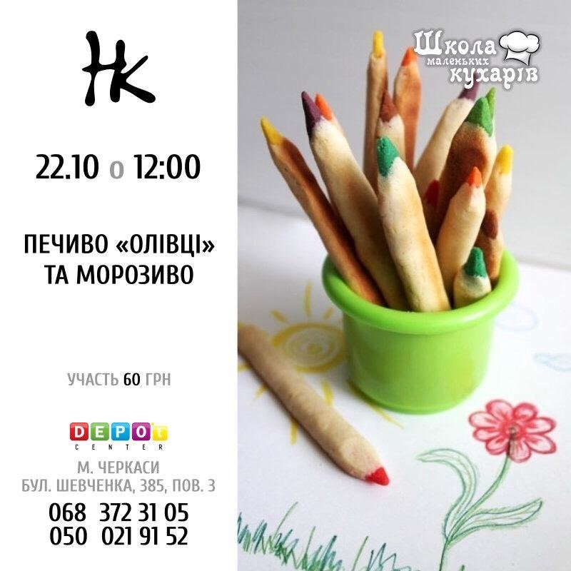 Школа маленьких кухарів запрошує діточок на майстер класс з приготування печива "олівці" та морозива. Чекаємо на вас:м.Черкаси,вул.Шевченка,385,3 поверх, тел.068-372-31-05,050-021-91-52