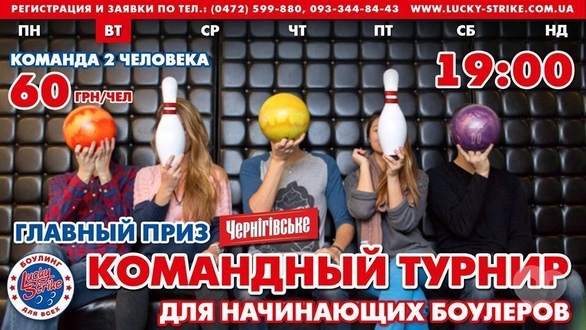 Щовівторка стартує командний турнір з боулінгу для новачків. В якості призу - ящик пива "Чернігівське".