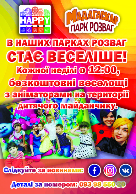 Щонеділі на території дитячого майданчика веселощі з аніматорами!