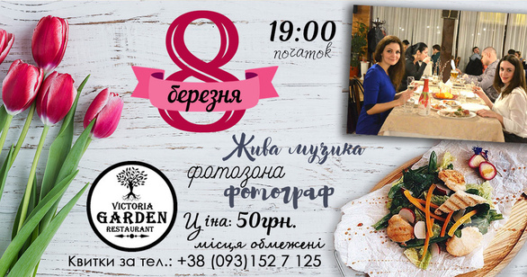 Насолоджуйтеся смачною кухнею, святкової фотозоні і романтичною музикою. Запрошуйте близьких друзів, сестер, мам і відпочивайте душевної компанією.