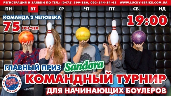 Кожен вівторок стартує командний турнір з боулінгу для новачків. В якості призу – ящик соку "Сандора".