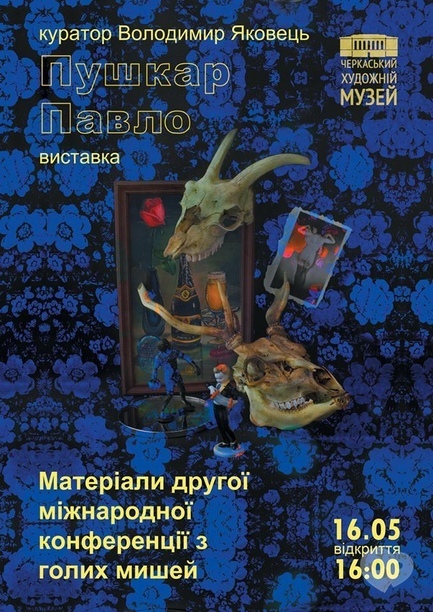Черкаський художній музей знайомить глядача з постмодерністськими візуальними практиками запорізького фотохудожника Павла Пушкаря. В основі його проекту під назвою "Матеріали Другої міжнародної конференції з голим мишам" імпровізація і гра зі смислами, де контекст превалює над текстом.