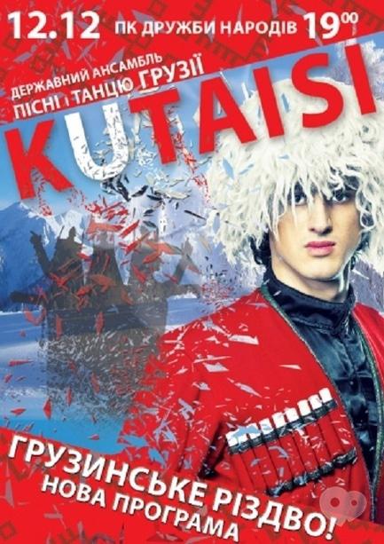 Настоящее культурное «сокровище» Грузии, многократный победитель международных фестивалей — он влюбляет в себя зрителя с первых минут уникального шоу, вовлекая в настоящий вихрь искренних эмоций. Ансамбль «Кутаиси» свято чтит национальные фольклорные традиции, усиливая и приумножая их с помощью молодых и талантливых исполнителей песен и танцев. Именно этим он выгодно отличается от других грузинских коллективов, поскольку сумел органично соединить в себе энергию, задор и красочность танца с волнующим многоголосным пением. Многолетняя история успеха этого удивительного коллектива стремительно мчится сквозь время, подобно бурлящей горной реке, завораживая сильнейшей энергетикой и непревзойденным талантом.