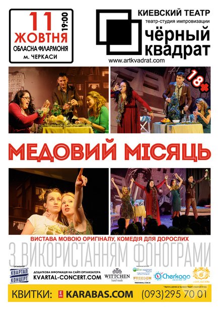 Театр "Чорний Квадрат" радий зігріти Вас позитивом! Легка фірмова комедія на вічні теми: кохання, зради і розуміння. Замовлення, доставка і бронювання квитків за тел .: (093) 295-70-01.