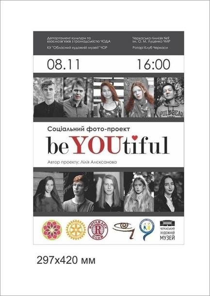 Проект beYOUtiful, автором которого является Лилия Алексанова, ученица 11 класса Черкасской городской гимназии №9, стартовал в августе 2018 года. Автор инициировала его в рамках КАКТУС (Community ACTion Russian Style) форума 2018. Выставка будет презентована в Черкасском областном художественном музее при поддержке Ротари клуба Черкассы и Черкасской городской гимназии №9.