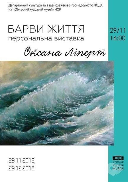 Персональная выставка Оксаны Липерт "Краски жизни". Творчество мастера – это постоянный поиск. Ведущим в творчестве автора является пейзажный жанр, хотя встречаем и другие направления живописи. Мотивы работ красочные и лирические, преимущественно реалистичные, что свидетельствует о индивидуальном своеобразии и богатстве воображения художницы.