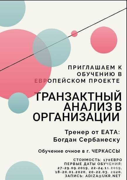 Запрошуємо керівників організацій, кризових менеджерів, коучів, айчаров, психологів для навчання в тривалому Європейському освітньому проекті "Транзактний аналіз в організації".