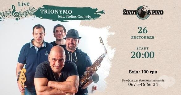 Запрошуємо на другий концертний тур групи "Trionymo" в тандемі з саксофоністом Stelios Gaziotis. Грецький кавер-група виступить в кращих пабах і ресторанах мережі Reikartz Hotel Group.