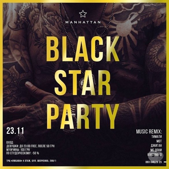 Запрошуємо на вечірку "Black star party" в "Manhattan".