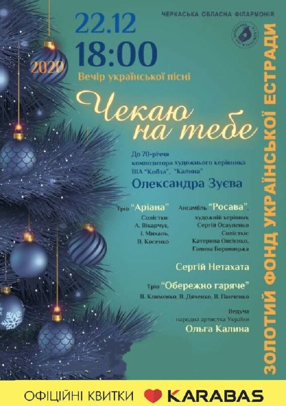 Напередодні зимових свят запрошуємо на Вечір української пісні! З музично - пісенним освідченням композитору Олександру Івановичу Зуєву даруватимуть своє мистецтво артисти - солісти філармонії!