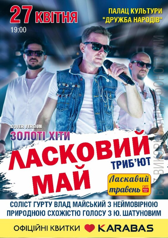 Перший український триб'ют на відомий гурт "Ласковий май" у виконанні українського гурту "Ласкавий травень". Соліст гурту "Ласкавий травень" Влад Майський має неймовірну природну схожість голосу с голосом солісту гурту "Ласковий май" Ю.Шатуновим.