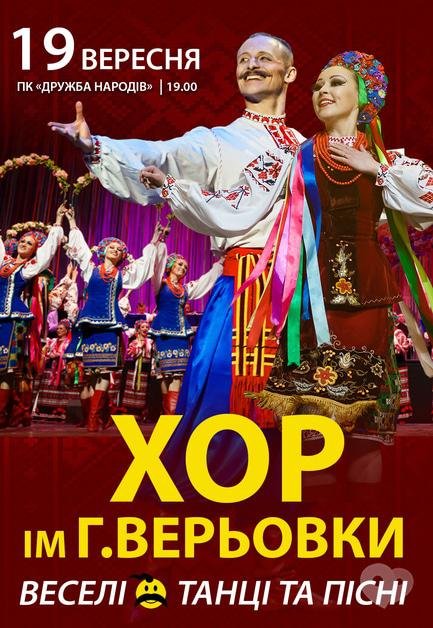 Національний академічний народний хор ім. Верьовки, що носить звання заслуженого, був заснований ще в 1943-му році Харкові. Засновником і керівником хору став Григорій Гурійович Верьовка - видатний педагог і діяч культури, хоровий диригент, а також композитор. Саме завдяки йому в репертуар хору спочатку увійшли не одні лише народні пісні, а й чудові класичні твори П. Ніщинського, М. Лисенка, К. Стеценка, М. Леонтовича, а також пісні композиторів-сучасників - Л. Ревуцького, Б. Лятошинського, П. Козицького, П. Майбороди, В. Кирейка, М. Колсси, І. Шамо та ін., написані на слова В. Сосюри, П. Тичини, А. Малишка, П. Воронька та ін. Традиція введення в репертуар власного хору пісенні композиції тих народів, у державах яких виступав колектив, збагатила його більш ніж на п'ятдесят роізведеній на 22-ох мовах світу.