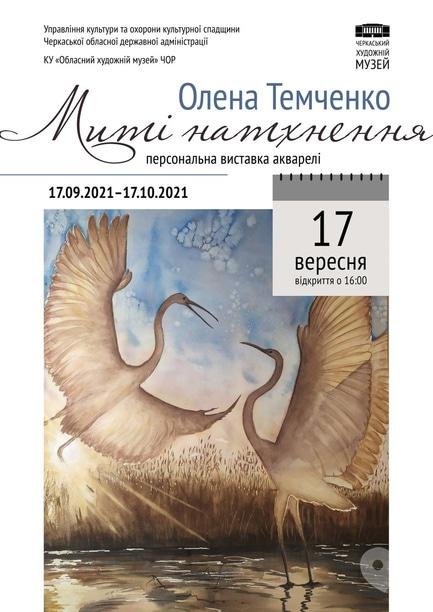 Запрошуємо гостей та містян на персональну виставку акварелі Олени Темченко "Миттєвості натхнення".