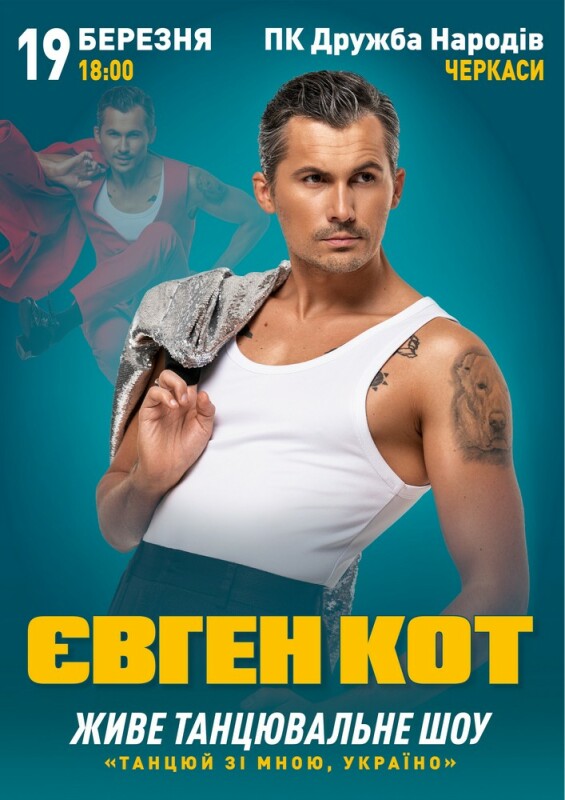 Топовий хореограф-постановник, режисер, переможець проектів «Танцюють всі», «Танці з зірками» та суддя шоу «Україна має талант», «Танці World of dance” Євген Кот вирушає в тур Україною з власним авторським танцювальним шоу “Танцюй зі мною, Україно”. Довгоочікуваний проект побачать глядачі в кожній частині України. В шоу беруть участь топові танцівники найвідоміших перфомансів України. “Танцюй зі мною, Україно” – це унікальне дійство на великій сцені, що об’єднає неймовірну хореографію та стендап Євгена Кота, грацію Наталі Татарінцевої!
