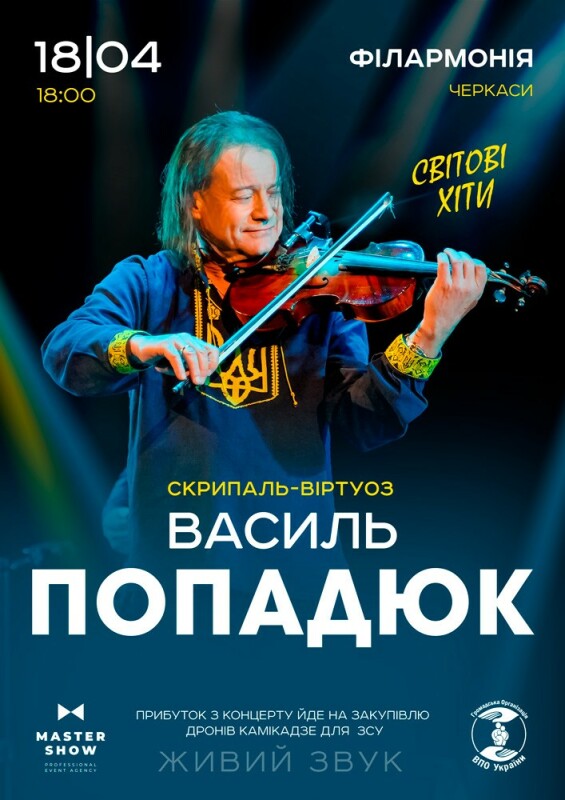 Неймовірне віртуозне музичне виконання Василя Попадюка подарують найяскравіші емоції, заряд енергії, магічне звучання скрипки й грандіозну атмосферу від всесвітньо відомого музиканта.