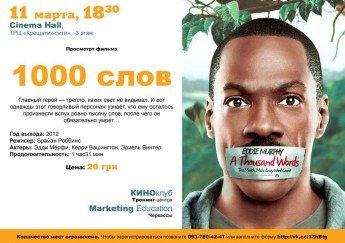 Фильм 1000 слов. Вторник, 11 марта, начало 18-30. После фильма, как всегда, обсуждение в приятной и вдохновляющей компании единомышленников.