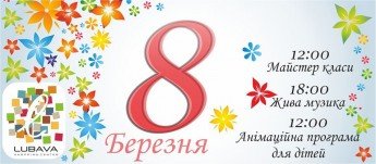 А для того чтобы, праздник почувствовали сполна, ТРЦ «Любава» подготовила для вас приятные сюрпризы, заходите и получите подарок, а с 18:00 наслаждайтесь приятными мелодиями саксофона в исполнении Эдуарда Черкашина! Для детей 8-го марта с 12 часов - мастер классы, и 9 марта с 12 часов анимационная программа! Веселые игры и хорошей настроение гарантируем!