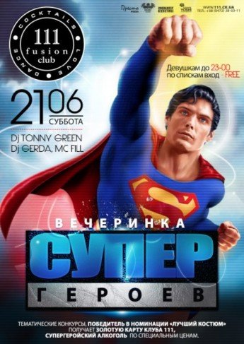 21 июня (суббота) Fusion Club 111 приглашает на СУПЕР-ГЕРОЙСКУЮ вечеринку!