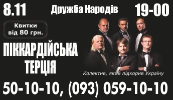 «Піккардійська Терція» - унікальний колектив для української музичної культури. За понад 20 років стрімкої пісенної кар’єри цей чоловічий гурт по праву завоював звання «музичної легенди України», а його учасники стали визнаними «метрами акапельного співу». Від 1992-го, року свого заснування, «Терція» випустила чотирнадцять різножанрових альбомів. Цими днями, до слова, «піккардійці» (Володимир Якимець, Ярослав Нудик, Богдан Богач, Андрій Капраль, Андрій Шавала та Роман Турянин) працюють над новим, п’ятнадцятим за ліком, студійним альбомом.