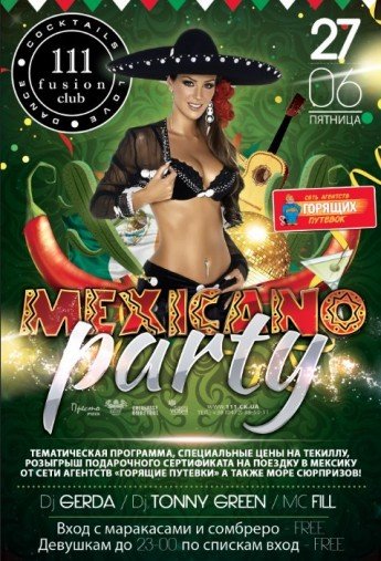 27 июня (пятница) Fusion Club 111 приглашает ВСЕХ на Mexicano Party!