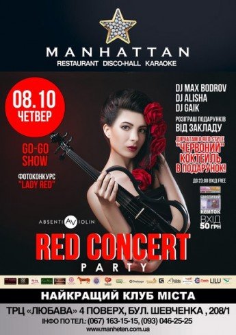 Фотоконкурс "Lady Red". Розiграш рiчного абонементу на безкоштовний вхiд на всi вечiрки в MANHATTAN CLUB!