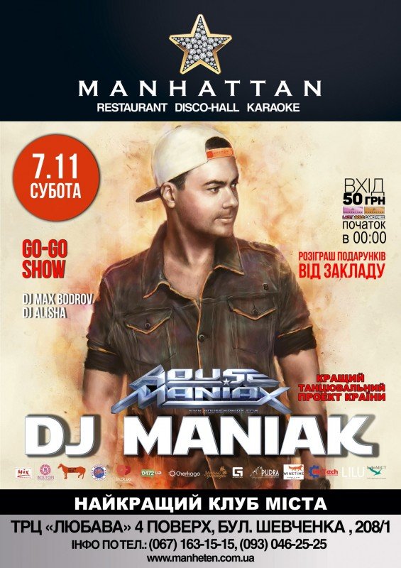 DISCO HALL «MANHATTAN» запрошує на яскраву вечірку від HOUSEMANIAX -  неперевершений DJ MANIAK!