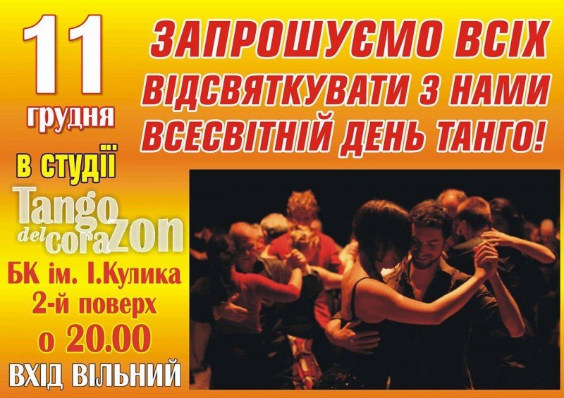 Запрошуємо всіх відсвяткувати всесвітній День танго.