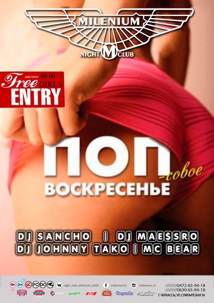 Каждое воскресенье ночной клуб Millenium приглашает всех на самое танцевальное завершение недели.