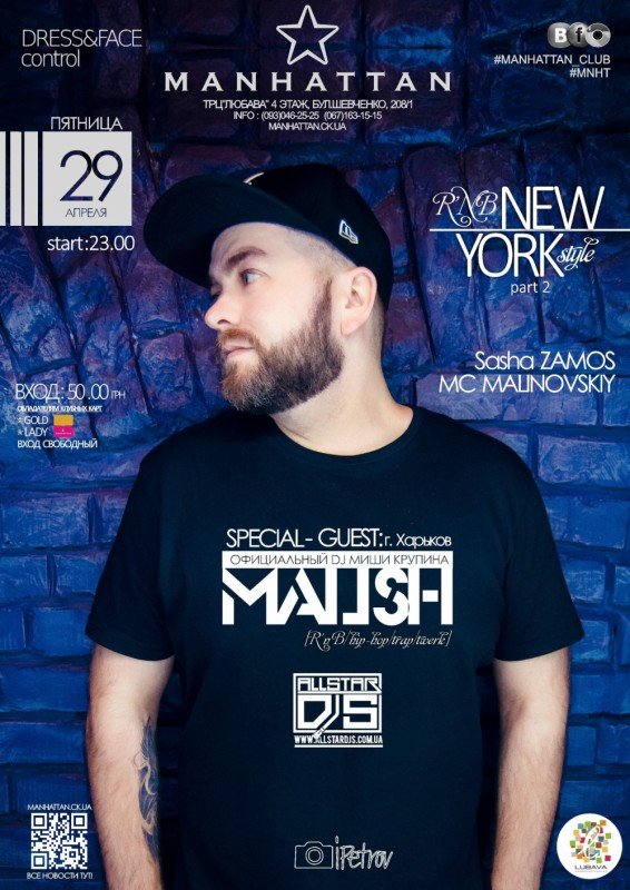 В гостях клуба Manhattan официальный диджей Миши Крупина, харьковский Р'н'Б и ХипХоп 'гэнста' - DJ MALISH DANGEROUS.