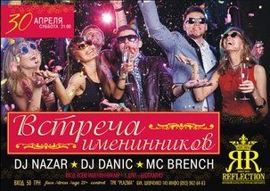 Для именинников апреля и одного друга бесплатный вход, скидка -20% по бару и кухне, а также участие в розыгрыше подарков и депозита на 500 грн. в Reflection.