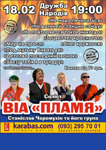 Концерт ВИА «ПЛАМЯ» в Черкассах состоится 18 февраля 2017 г, 19:00.