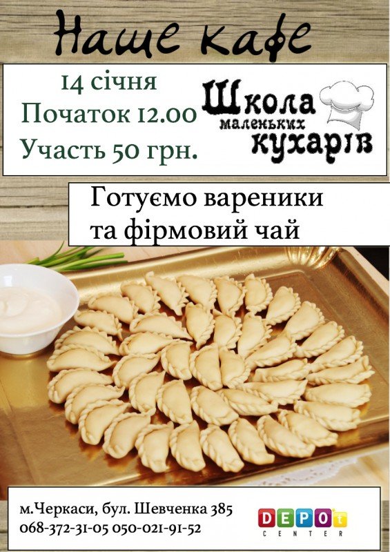 14 січня у м.Черкасси, за адресою :бул.Шевченка,385 ми чекаємо Вас та ваших діточок та будемо готувати вареники.