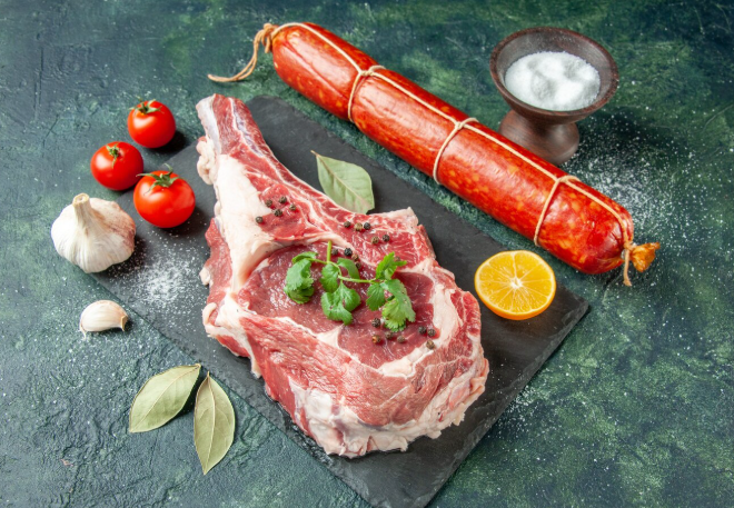 - Мясо, сало. Это основа домашней колбасы. Чаще всего используют свинину, поскольку она идеально сочетает мягкость и сочность. Но в зависимости от рецепта можно брать говядину или курятину.